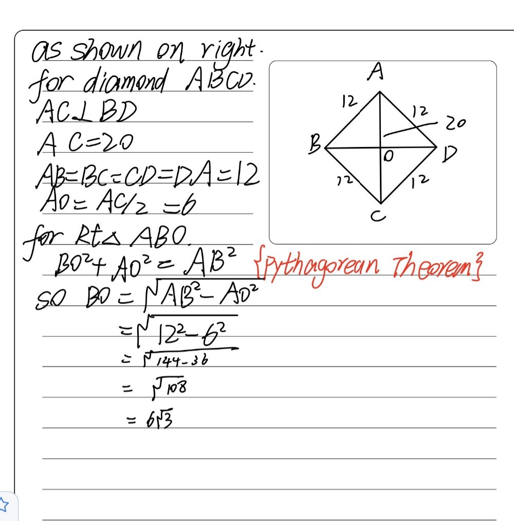 / How To Find The Side Length Of A Rhombus With Its Diagonals : Since, all 4 sides must be 13.